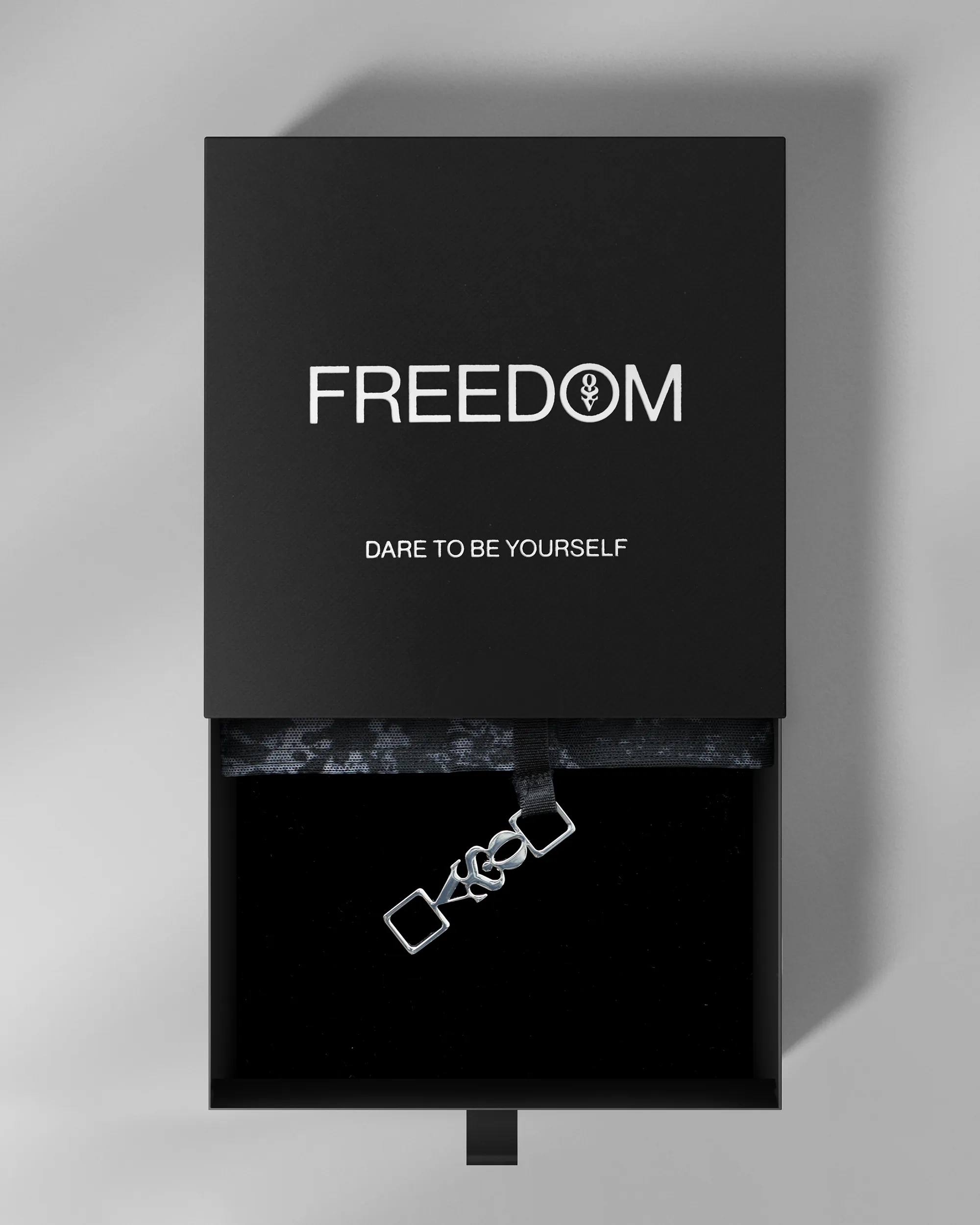 The choker is a bold and original accessory for every confident woman. Its wide strap with a unique pattern fits snugly around the neck, while the silver OSSV pendant adds a distinctive touch. Thanks to the comfortable fastening and easy adjustment, you can wear it just the way you like. The choker pairs perfectly with other pieces from the Corrosis collection.
